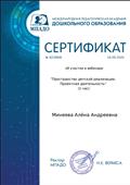 | "Международная педагогическая академия дошкольного образования" Сертификат об участии в вебинаре "Пространство детской реализации. Проектная деятельность" 16.09.2020 |
